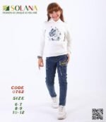 طقم بناتي ميلتون قطن + جينز مقاسات 6-8-10-12 سنه